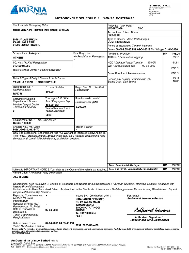 Sebagai seorang penunggang motosikal ada pelbagai risiko yang membahayakan kita di atas jalan raya. 3 Cara Hidupkan Roadtax Motor di Malaysia. Kurnia insurans motosikal Friday January 14 2022 Edit.